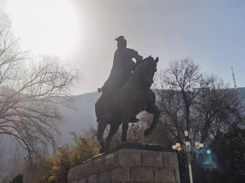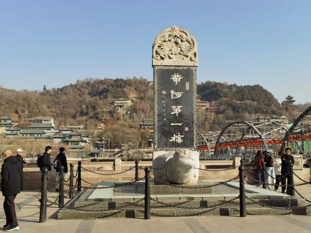 下山后来到河对岸,有沿河步道一路向西,走了大概两公里到达黄河母亲像。