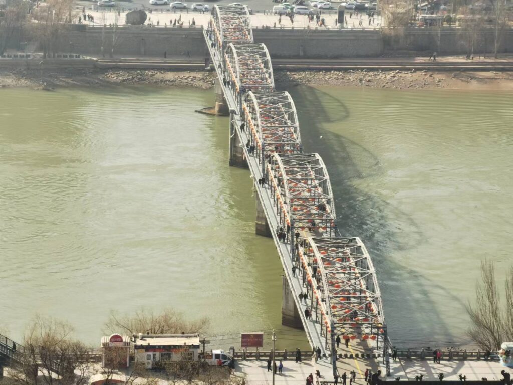 第二天一早就奔着中山桥去了,这里游人很多,让人不想多呆,于是过桥上了对面的白塔山。