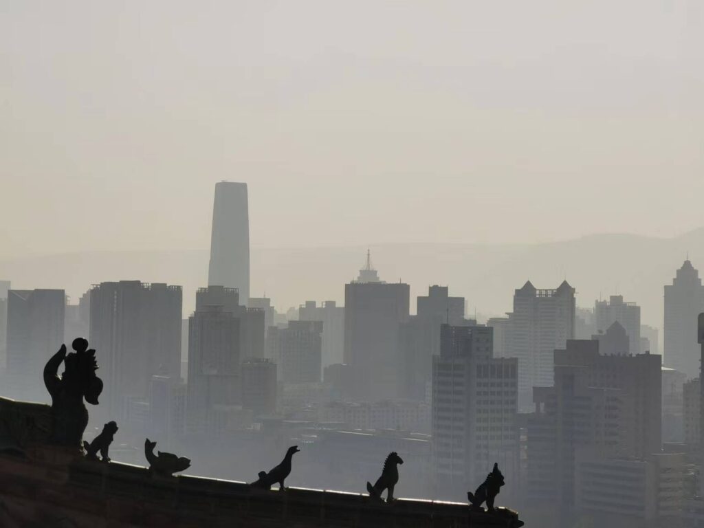 山上的人就少了许多,走马观花的转了几个宫殿庙宇便上到了白塔寺,白塔山同我以往爬过的山还是有不小的区别,上面的建筑很多,牌坊,凉亭,寺庙一个接一个,而且没太有土径,基本都是铺设好的步道。白塔寺因山巅的白塔而得名,寺庙不小,上到此处可以稍作歇息,远眺兰州城,但其实这里的景观并不那么开扬,下面几个观景台的视野会更加开阔。