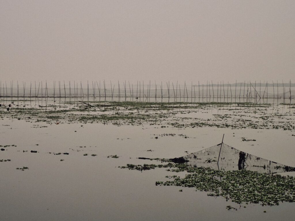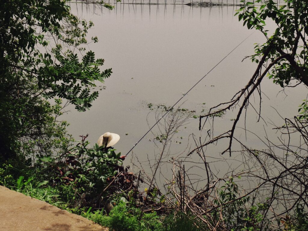 在水岸新城的南侧有条小路,这里钓佬云集,往里走甚至还有一个专门用来钓鱼的鱼塘,还有一个农庄。但不得不说,这岸边的腥臭味是真的有点上头,水葫芦也到处都是,漂浮着的死鱼也不在少数。