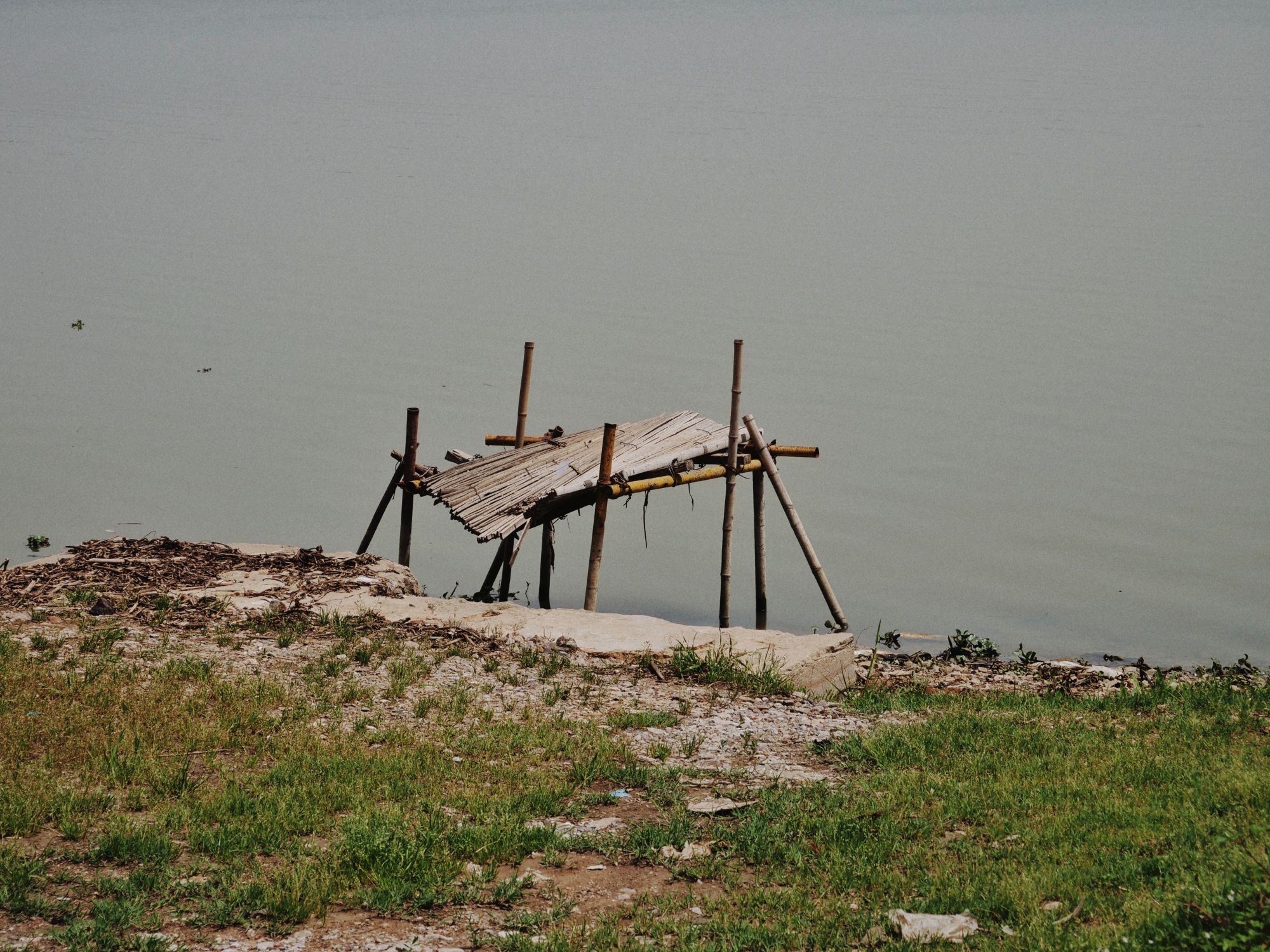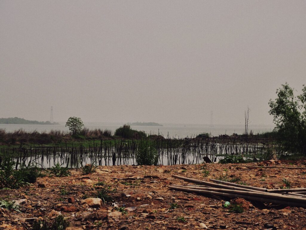 今天的能见度可以说是挺糟糕的,就算到了湖边也还是雾蒙蒙的一片,不知道是不是因为沙尘的原因。但好在天气是晴的,甚至还很热。