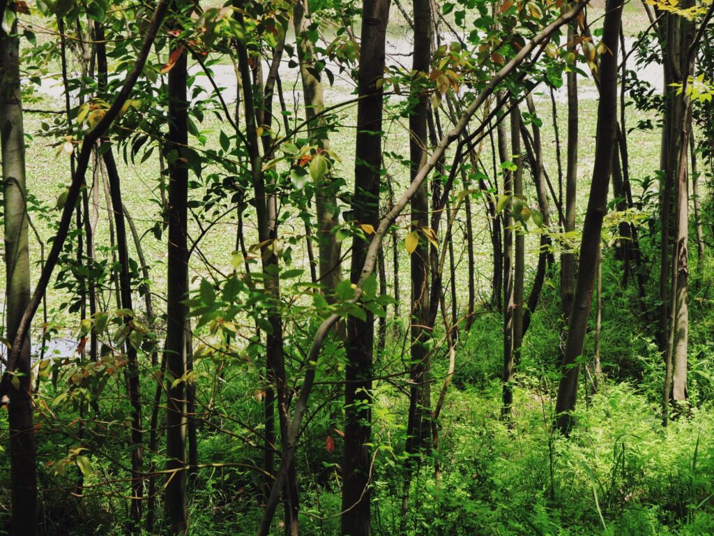 最后来到了庙岭这一侧。在这里沿着一块农地,抑或是荒地,还有池塘交错排布的一块半岛上,漫无目的地前行。