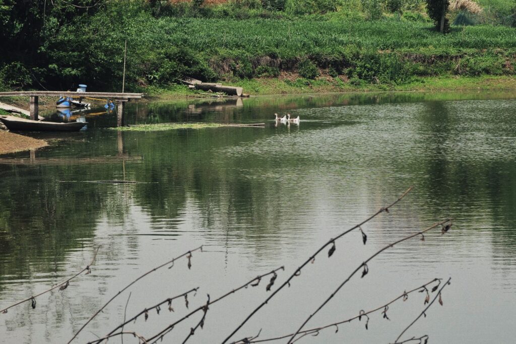 继续沿着公路往南走,在一半的地方拐到了另一片农田、湖边。
