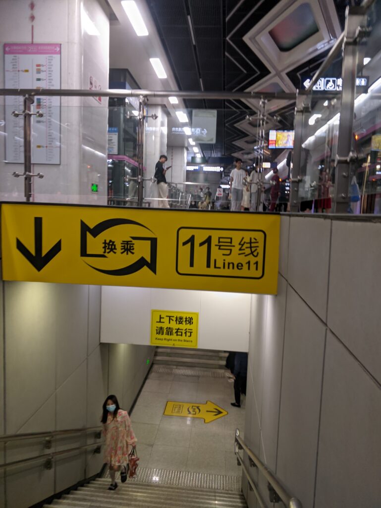 到达武汉东站,因为是节点换成,下个楼梯就到11号线站台了很方便。但是11号线这个配色,我还以为这是什么警示标志...