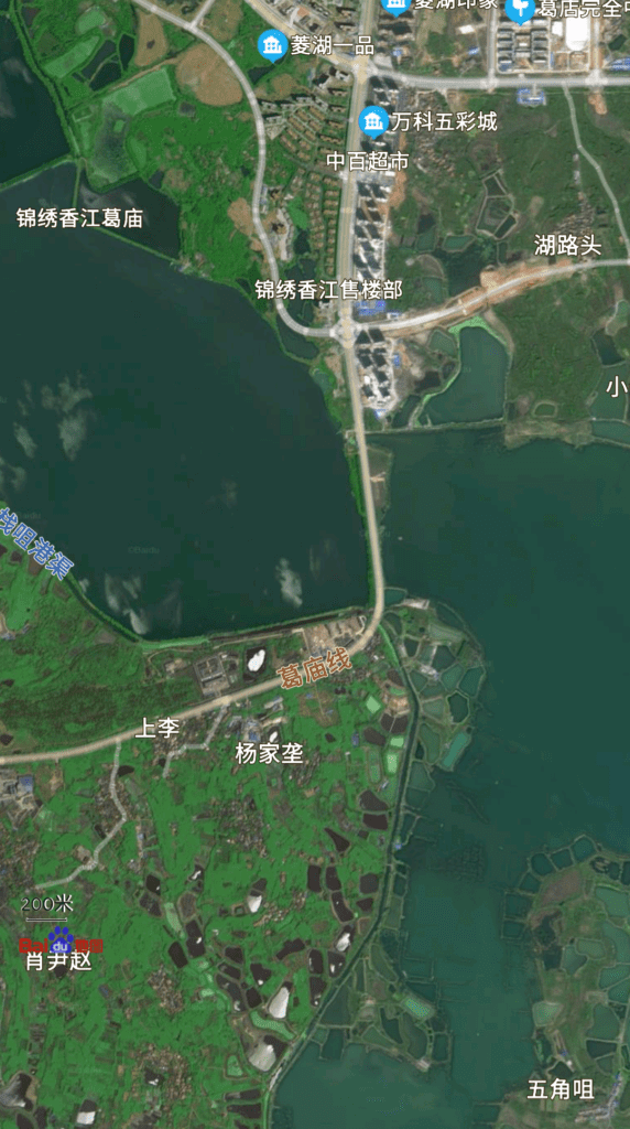 这条公路是葛庙线,连通葛店和庙岭,包括严家湖大桥。这个桥所在的位置恰好是两地的分界线,也难怪为什么共享电动车和葛店公交都只能开到这。顺便放一个葛店经开区管委会的介绍在这。