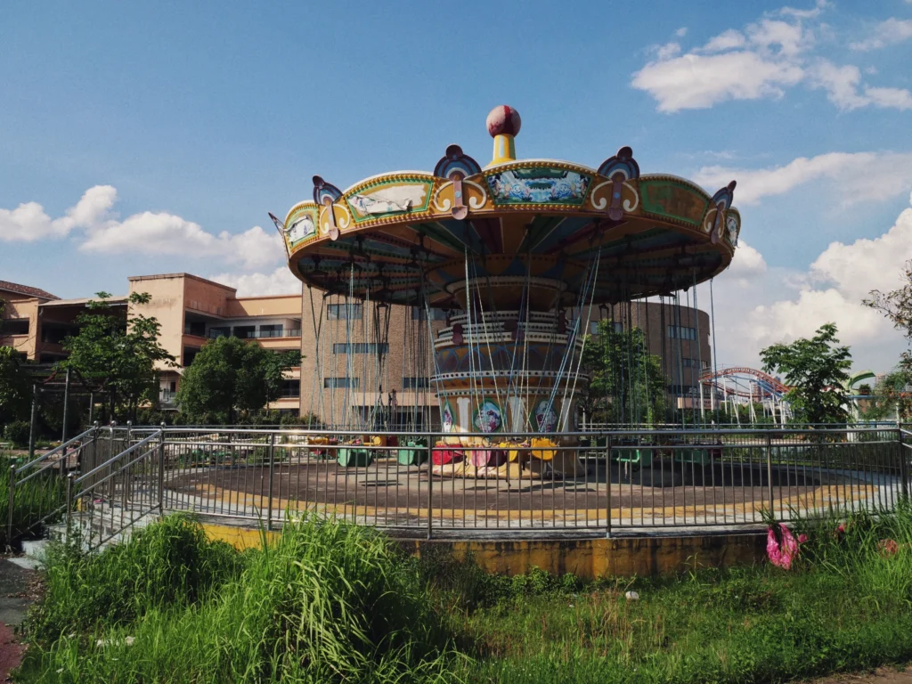 不觉间就沿着江碧路来到了火车站。看了眼时间还尚早,而且骑行卡也还没用完,就继续向南转转。意外发现了一个废弃的游乐园。