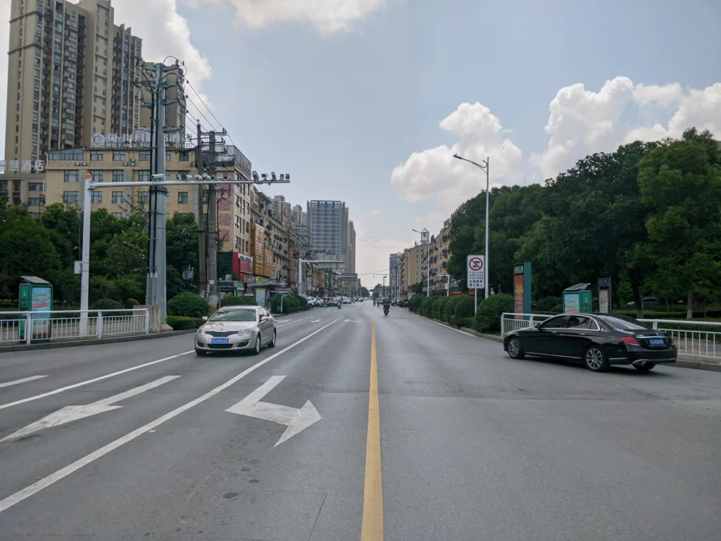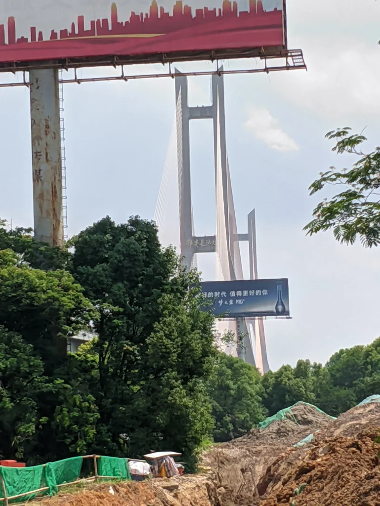 在江碧路上遇到了一个横跨鄂钢的天桥,可以通行人和机动车。