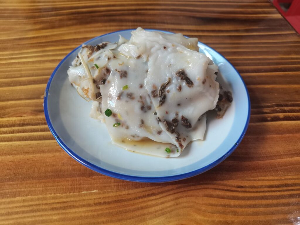 我们两个加上昨天碰到的两个姐姐,一起四个人,在高铁站汇合,便出发去篁岭,中途司机师傅还带我们去婺源县吃汽糕,汽糕和肠粉很像,但味道很不一样,很好吃。
