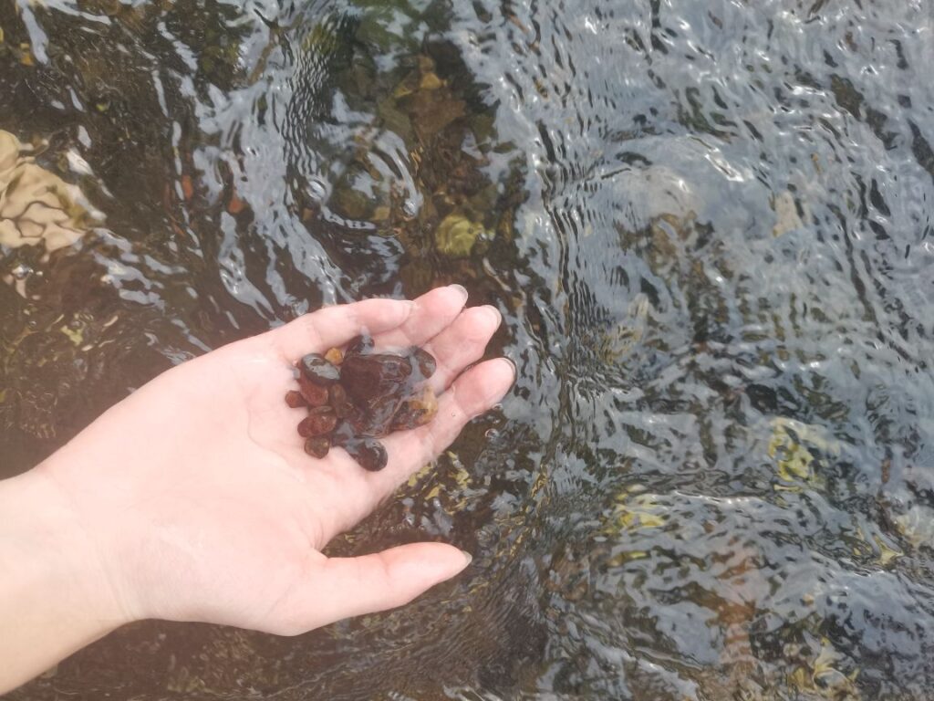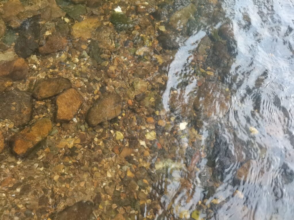 道路旁便是一条长长的河,司机师傅说可以下去玩水,于是就下水玩了。真的清澈见底。
