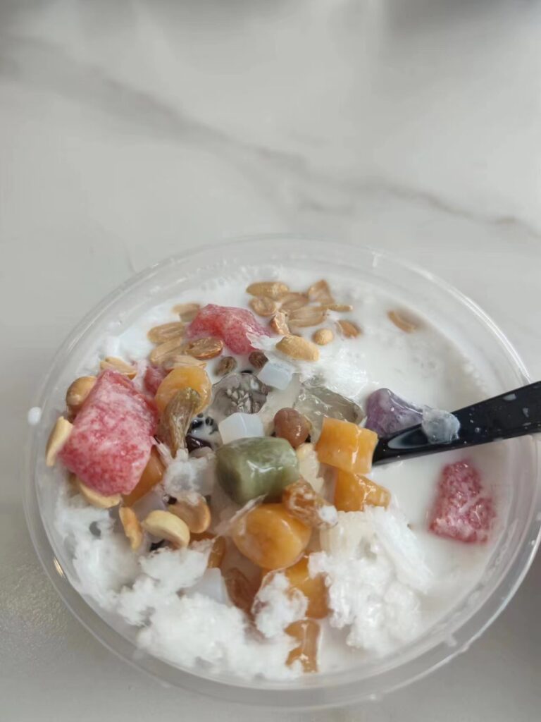 长乐区的招牌就是冰饭加烧烤,不是特别饿就没点烧烤只点了冰饭。说是冰饭,跟徐州的冰粉大同小异,依我看就是冰粉加的米饭。