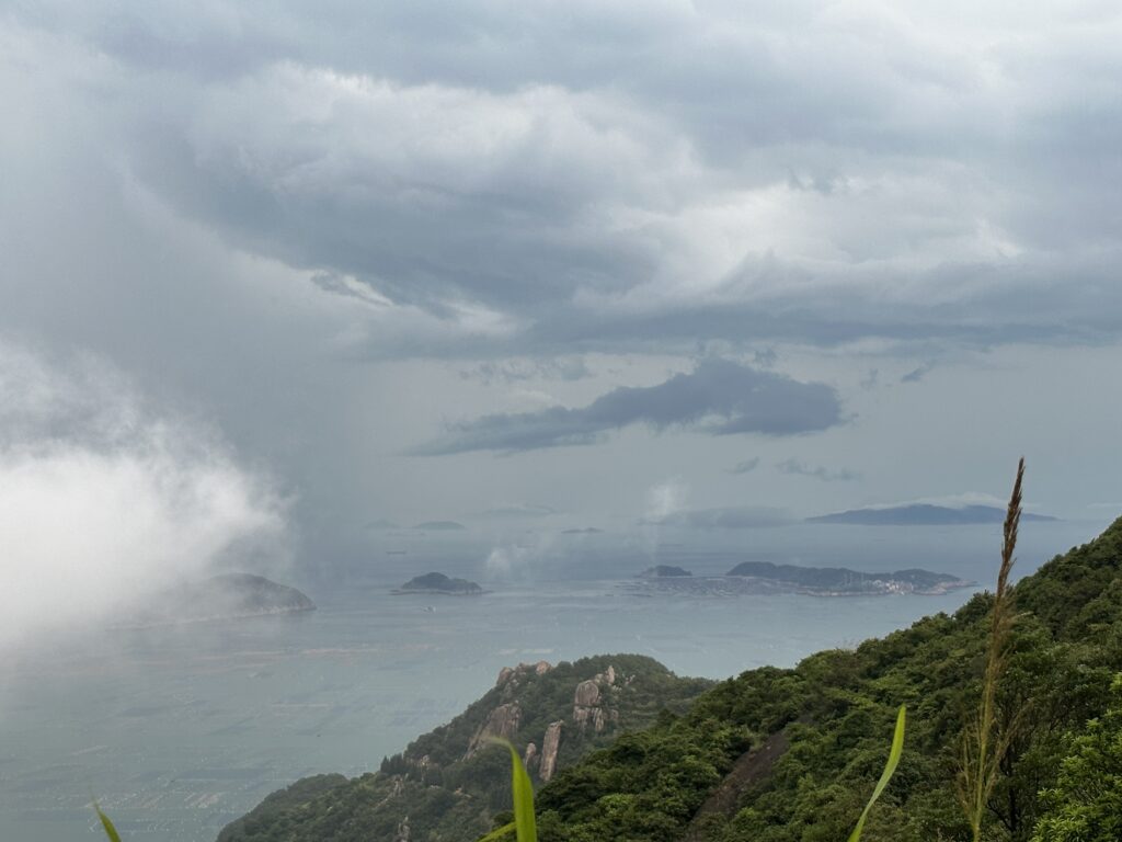 刚上来就看上面有些人下来,大学生旅游讲的就是一个不要命,上!坏了,雨下大了,风还大真有点小怕,在半山坡等雨停了但是上面风太大了,不是很敢爬。