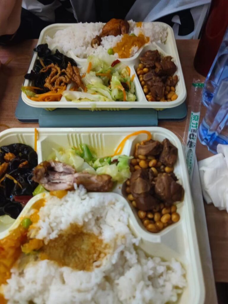 买晚了啥都没了,25一份的盒饭,他要是好吃还则罢了,鸡腿像是超市卖的干干巴巴,肉我是一口没动,包菜还算凑合,鱼香肉丝就更不是人了,很难想象列车上在厨房车厢里的工作者是在一种什么样的精神状态下做出了这一盒并不美味可口的饭菜,亦或者是食材本身的原因。whatever,上当已经上了,再回顾只能是认栽,不如憧憬到地方之后的美味佳肴,我如此想着。