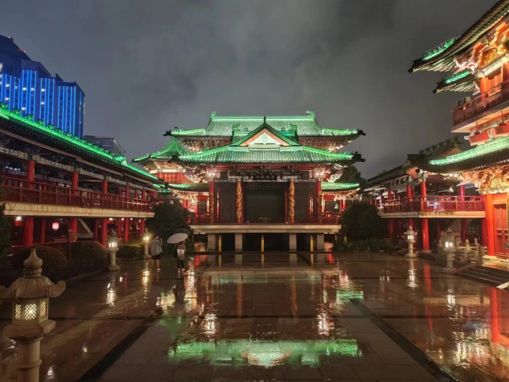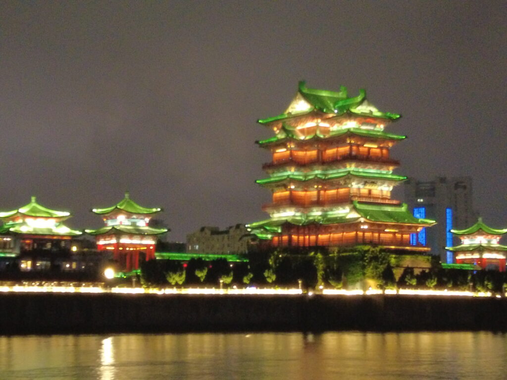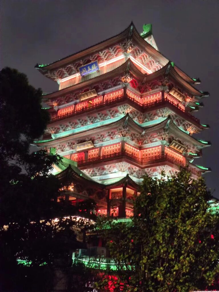 夜游的船票真的很值得,票也不算贵,航程大概半个小时,买底层票就足够,下着大雨底层的位置也是人满为患,好在驶出码头后围栏就解开了,一二三层都可以去,三层位置好可惜会淋雨,还是去二层拍了拍夜景,pocket的夜景拍摄能力实在是有限,没办法还原出滕王阁美景的十之二三,可惜。