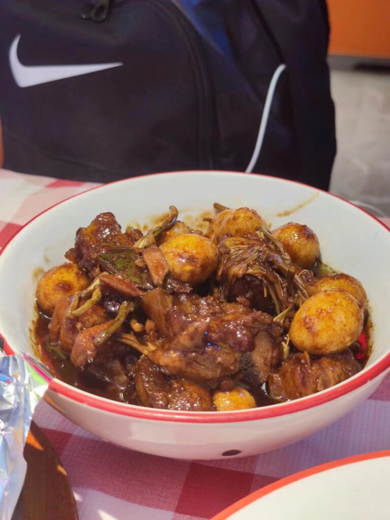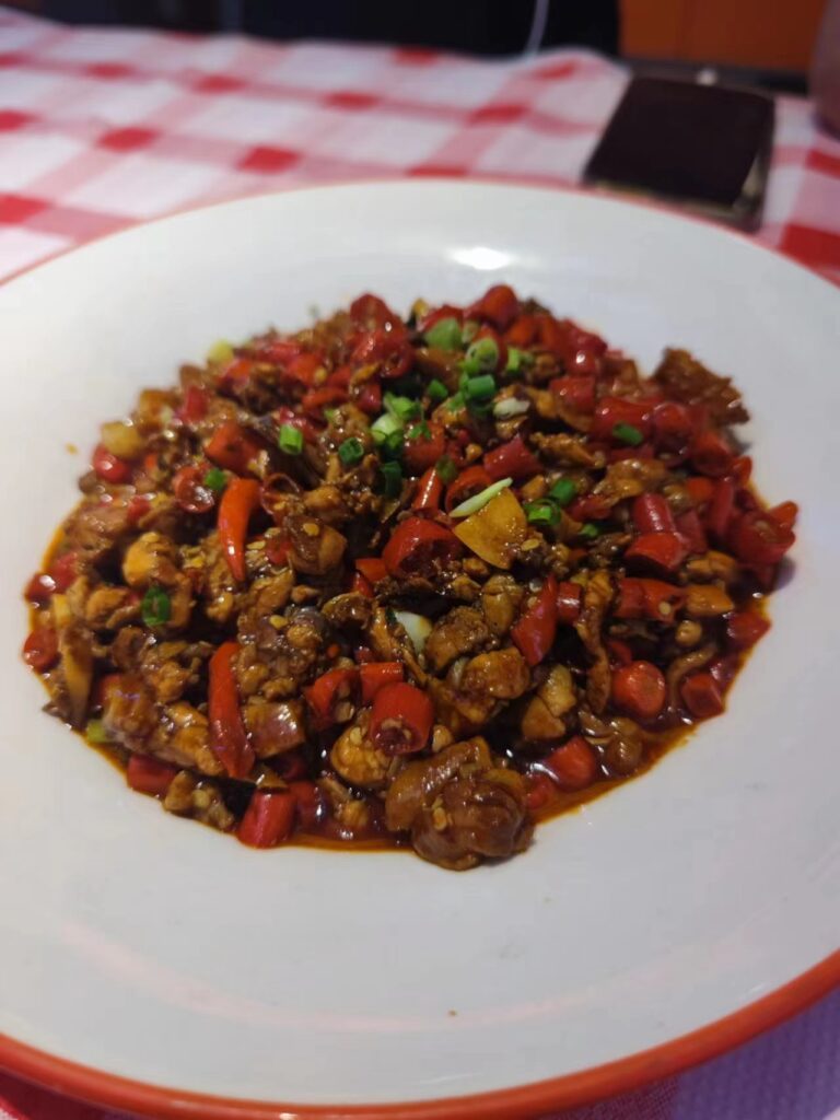 南昌辣得我一徐州人够呛,也不算是不能吃,真的有点辣,辣子鸡确实是有点水平的,炒粉尚可,瓦罐肉真的属于香料中药集大成者,入味的都刚刚好,火候也很到位,还好点了个豆腐要不然陈哥怕是没什么菜能吃了。