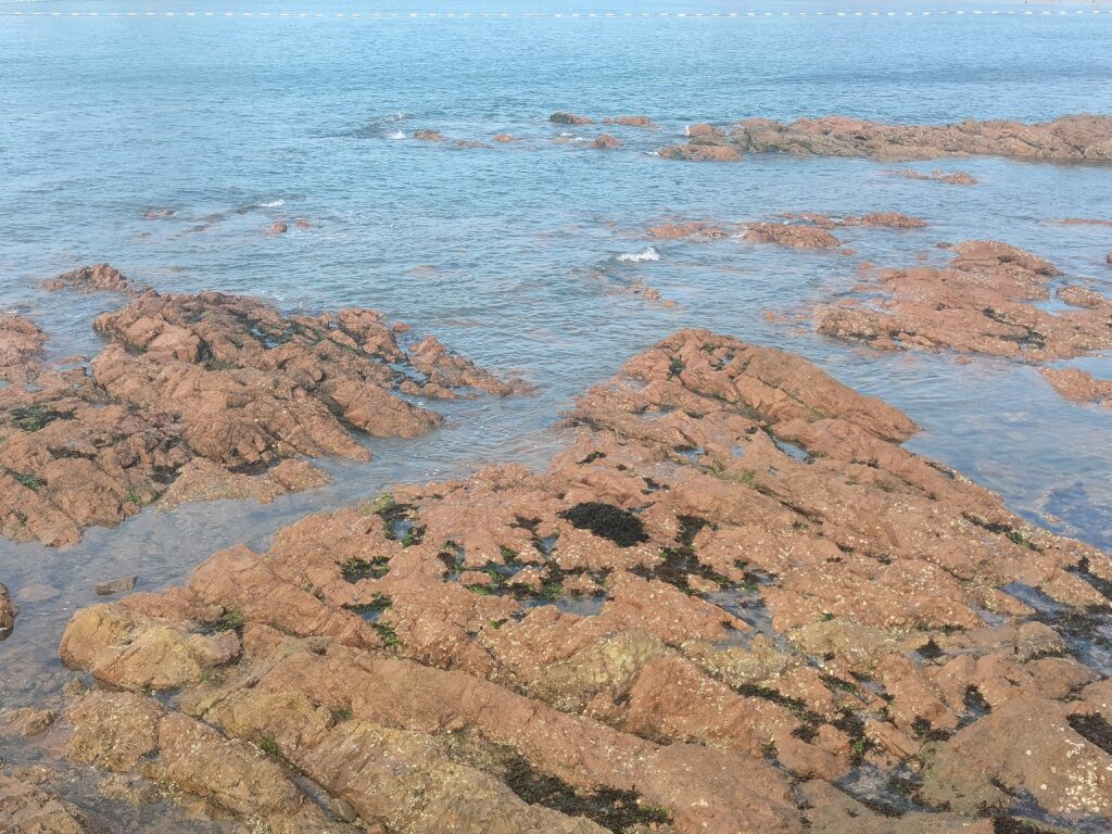 五四广场海边的礁石上有许多人在“寻宝”,我们也下去尝试发现一些什么。