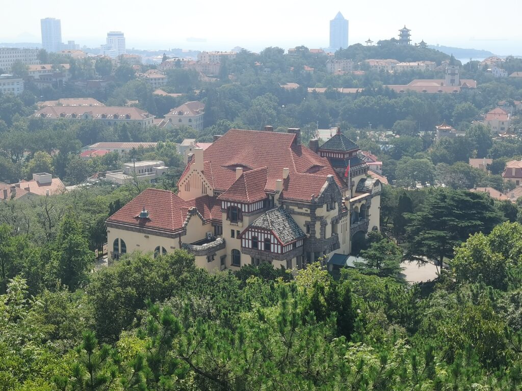 在栈桥这边看完海,就去信号山看德式建筑群。信号山附近的地势很陡,一会上坡,一会下坡,加上青岛没有共享单车,去就近景点全靠步行,再加上一晚上坐车的折磨,还没到信号山人已经不行了,在路旁的板凳上休息都能睡着,最后三人决定一鼓作气把山爬完,就回酒店躺平。好在山不高,风景也不是很惊艳,很快就下山了。