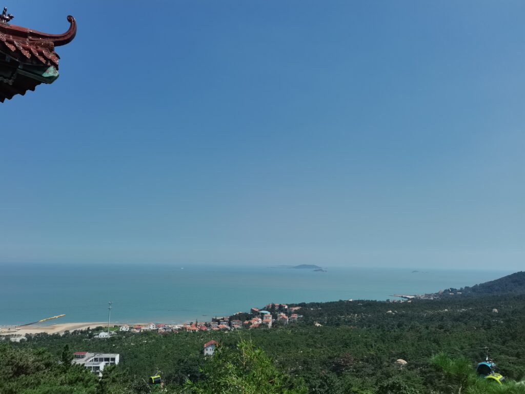 再往上爬,视野也更加辽阔,虽然烈日当头,但海风吹着很凉快。