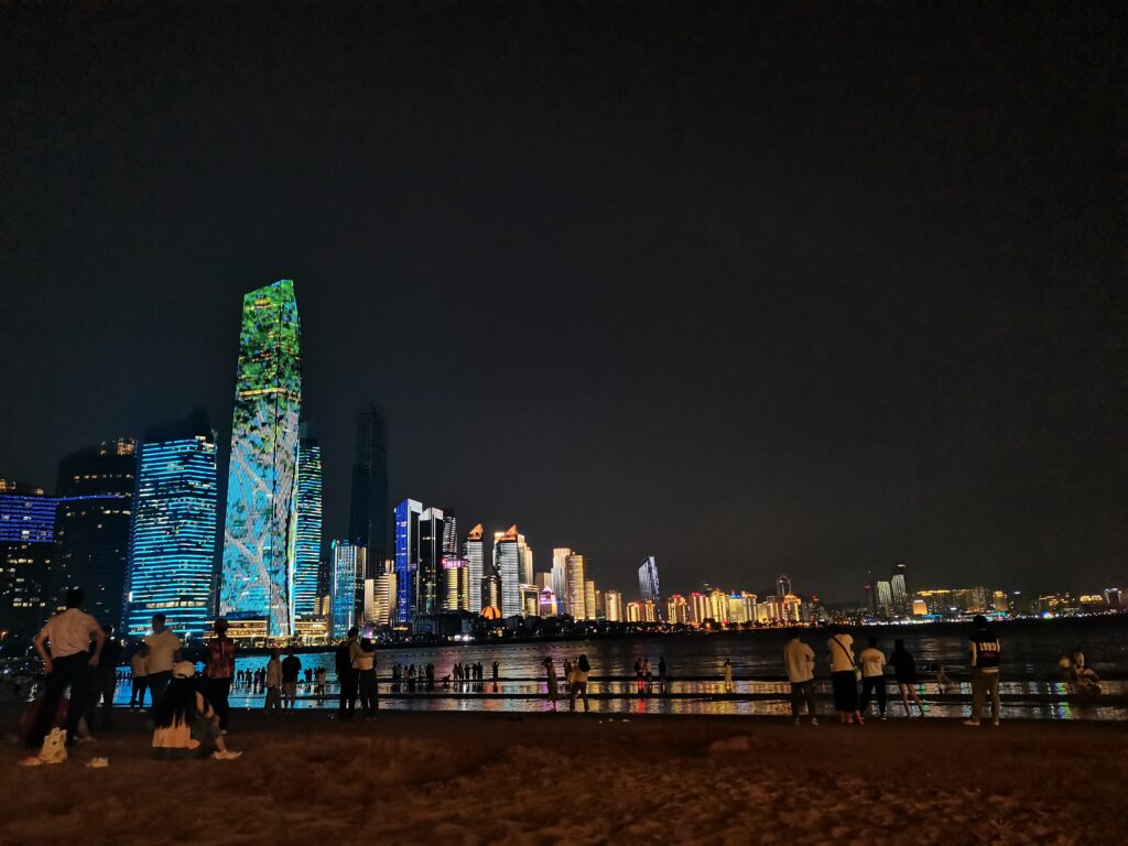 从太平角公园地铁站出来便是第三浴场。第三浴场比第一浴场热闹,海边的人也很多,看到从西面渐渐升起的月亮,还带了一点红色(手机实在拍不出那种感觉,现场看真的超绝)。