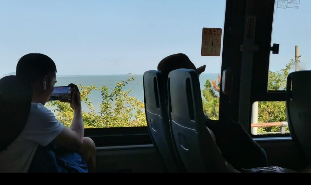 下地铁后,换乘383公交前往仰口,三个呆比坐反了,好在反应过来,意识到问题的严重性,立刻下车,去对面坐车。