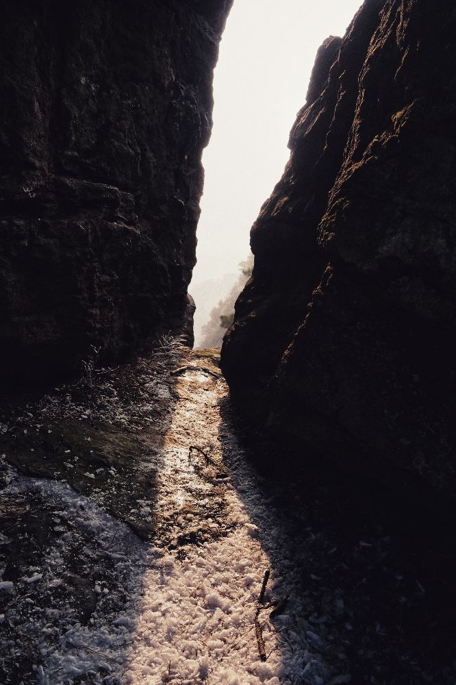 下山之旅比较极限,返程的时候离末班只有半个多小时。其实跑一泡还是来得及的,但是路上发生了一点小意外。傍晚时分的雾气还是这么浓,阳光也渐渐冷却了下来。到山底的时候已经5点34了,听到了汽车引擎的轰鸣,飞奔下去发现最后一班车刚刚准备发车,千钧一发之际我叫住了司机,勉强成功上车。