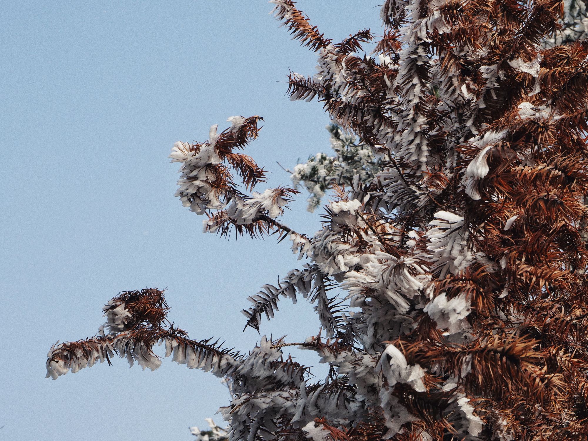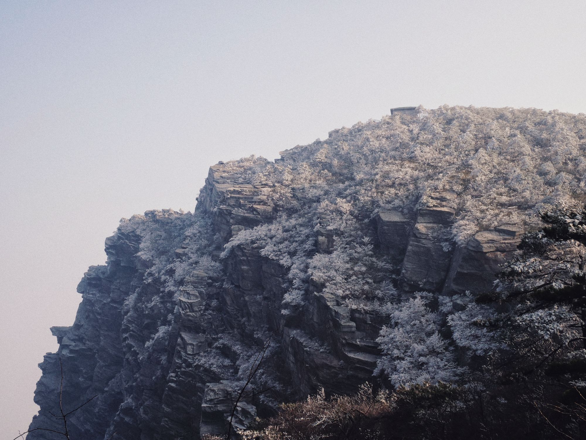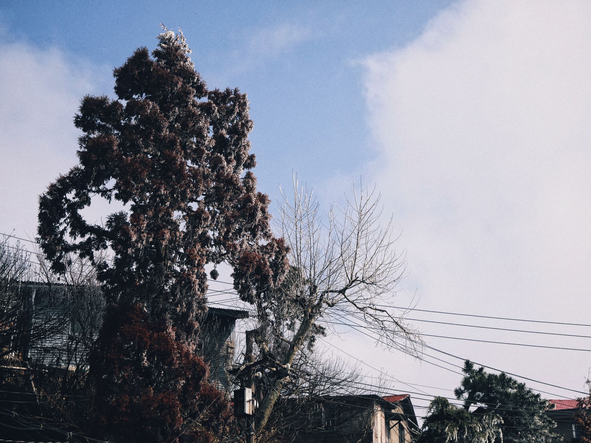早上9点出门在牯岭镇中溜了半圈,看了看结了一晚的雾凇。