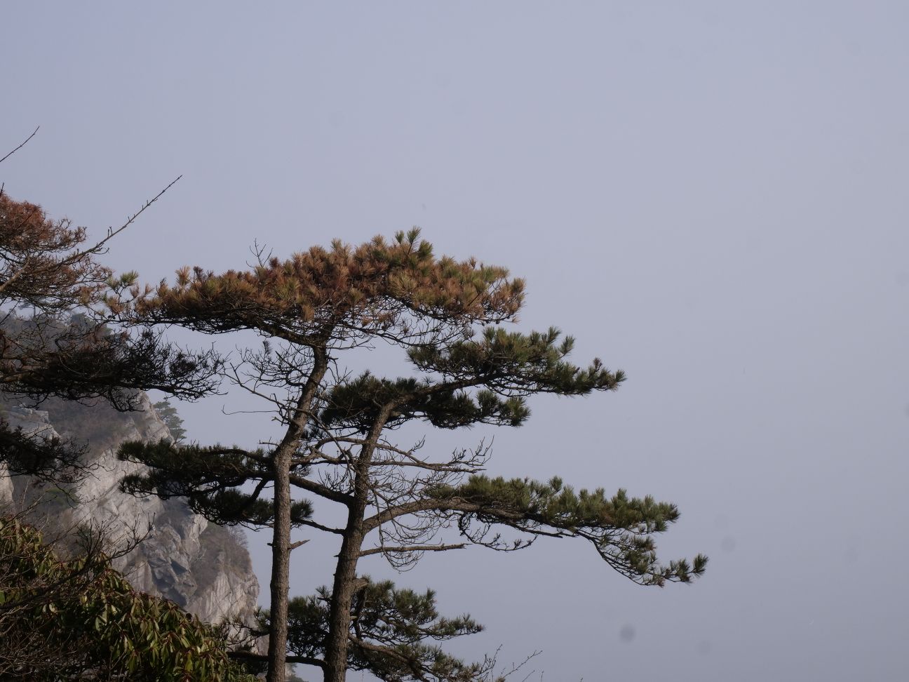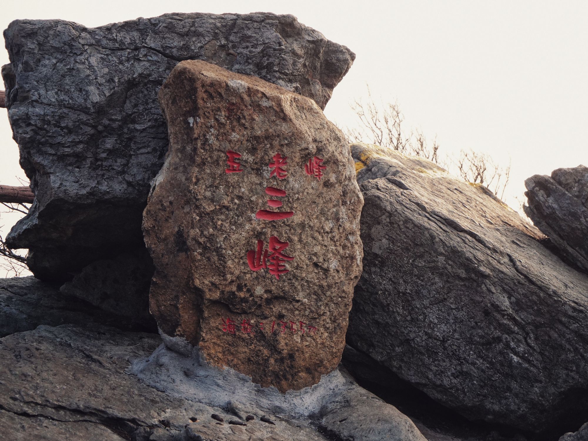 五峰在另一座山上,需要先下去再上来,路上的景致也还可以(但是雾太大了!)。