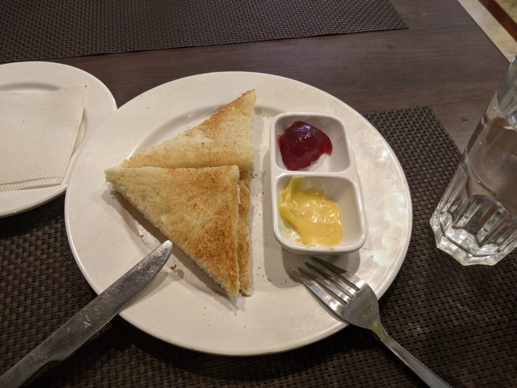 早上刚过7点就醒了,睡了不到七小时,时差还没倒过来。浅浅收拾了一下到楼下退房,前台提醒我有一份早餐,但出发前吃了一个月饼不太饿,就点了一份烤吐司。