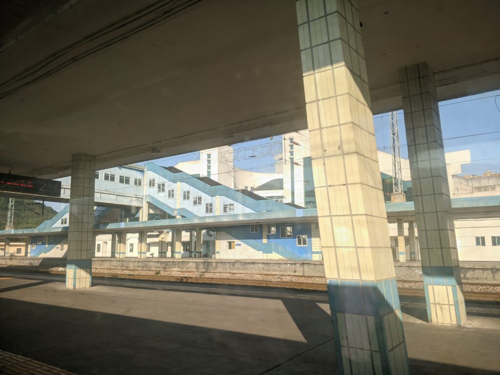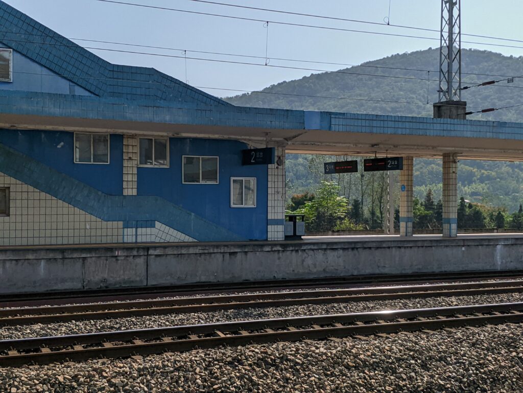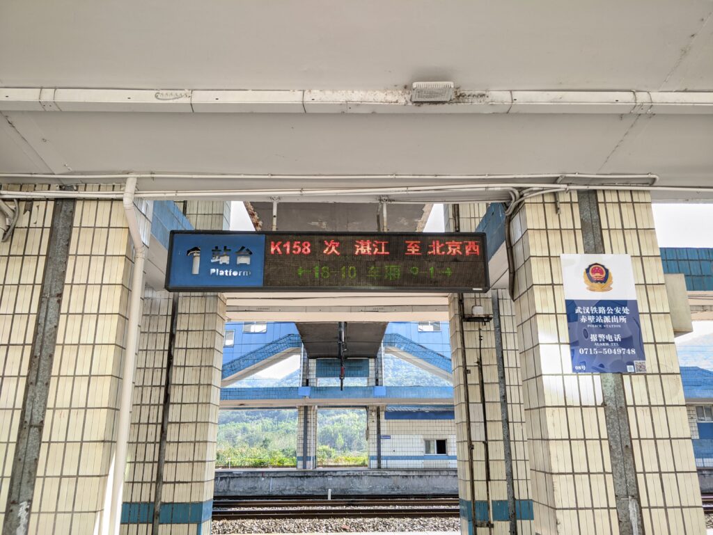 今天没有上演极限赶车,进站意外的悠闲。发车前还看到了猪。搭乘兰局的车往长沙方向驶去,一个多小时就到了赤壁站。赤壁站的站房比较老旧,蓝色瓷砖倒是和天空挺搭的。