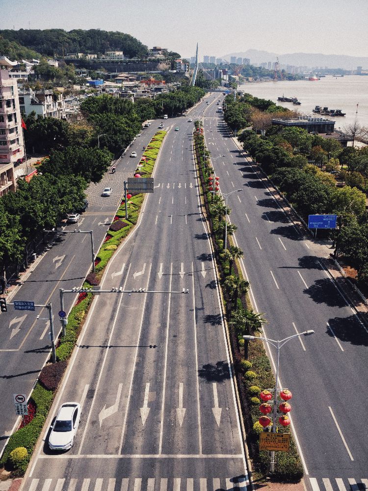 下了桥便骑车沿着江滨东大道往东走。这条路挺宽敞,白天人少车少,加上宜人的天气和清爽的江风,感觉很适合在附近搬个躺椅躺上半天。