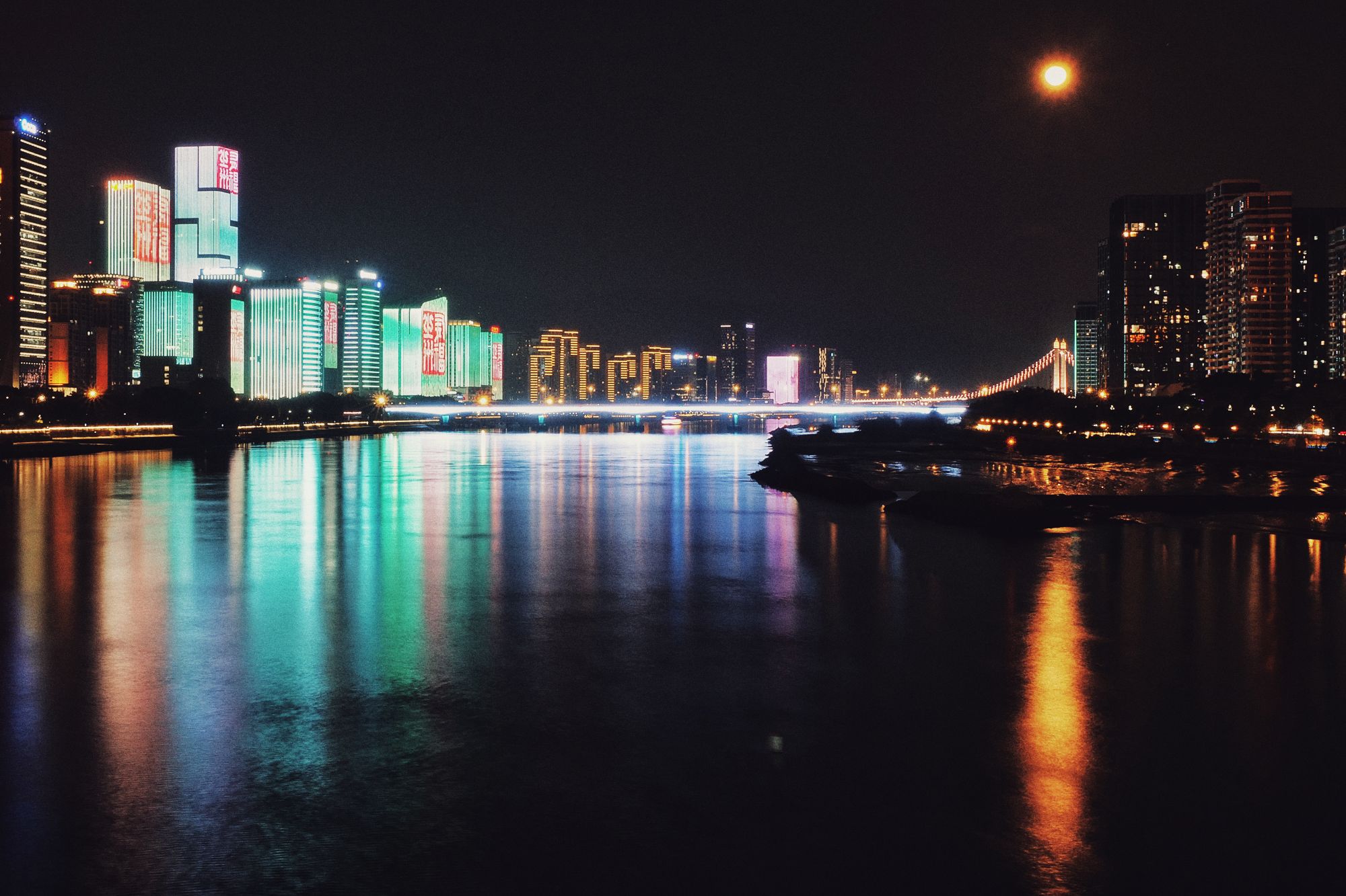 骑车回到了住处,再次路过闽江大桥时发现远处夜景挺耀眼。