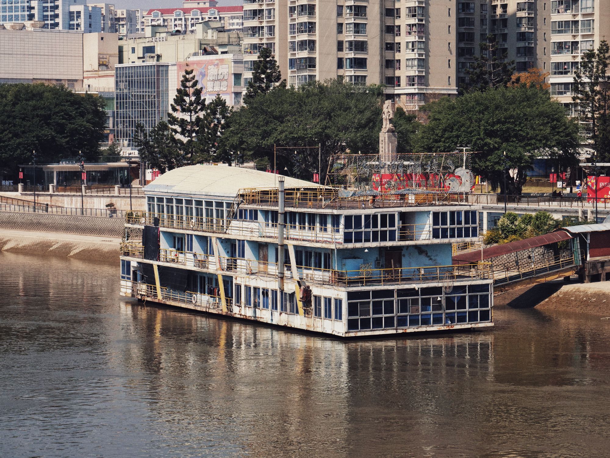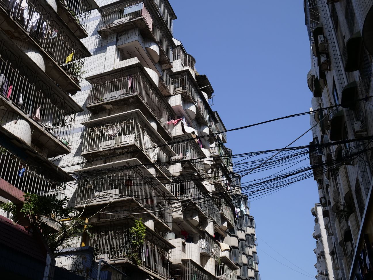到了一处马尾旧镇。这里净是些上世纪八九十年代风格的那种老居民楼。楼间悬空的电线,昏暗无人的菜市,老爷爷的电器维修店,时不时路过附近上学的学生,蓝紫色的窗玻璃。这里一定很慢吧。