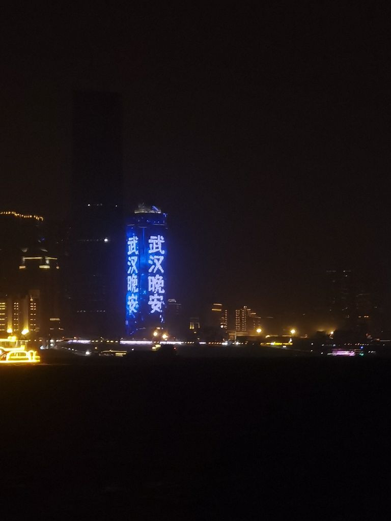 即便是置身于黑暗中,武汉依旧用灯光打出了具有自身特色的名片。武汉的灯光秀比之青岛更富人文气息 ,云鹤、红旗、樱花穿插于浪涛之间,以长江将这座城市的古今相连,不得不称赞其构思之精妙。