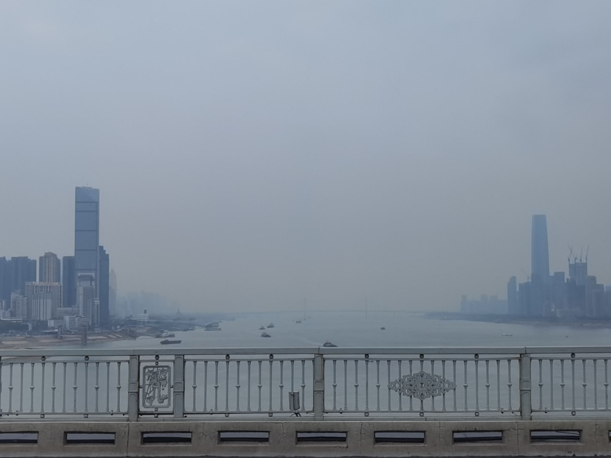 船在江边停泊,等待靠岸。我自楼梯下到一层,靠在栏杆上,看近处的桥,远处的楼,吹江上的风,想过去的事。