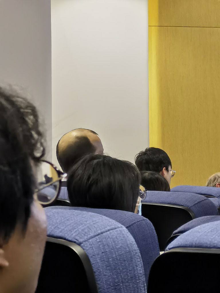 A和E很轻松的找到了有纸杯蛋糕的甜品台,W在可颂甜品台找了很久都没有找到他们,只能悻悻回到报告厅。第三场报告W始终惦念着纸杯蛋糕,无心听讲,全程都在观察外国友人的秃头解闷。