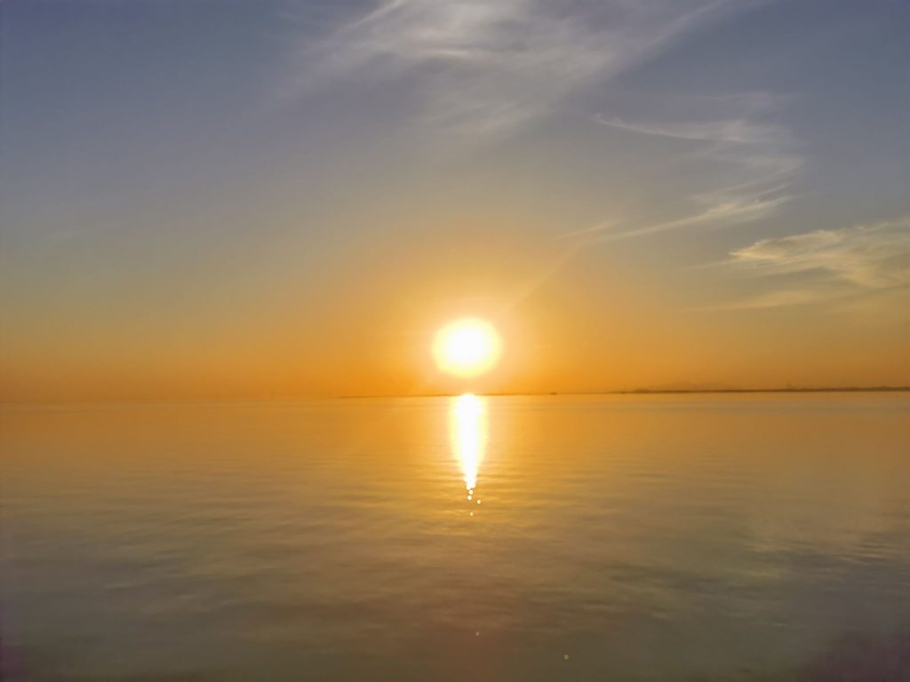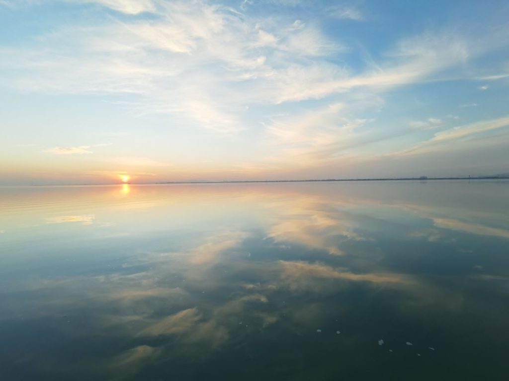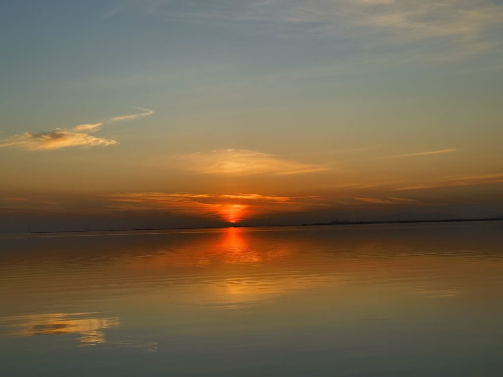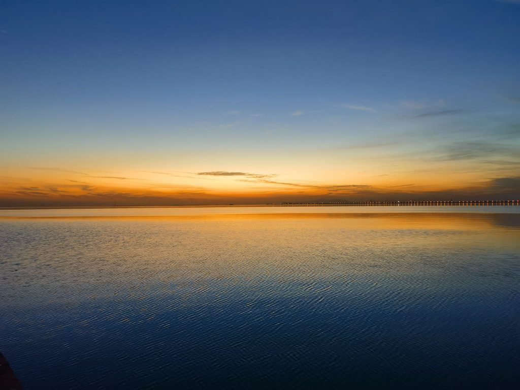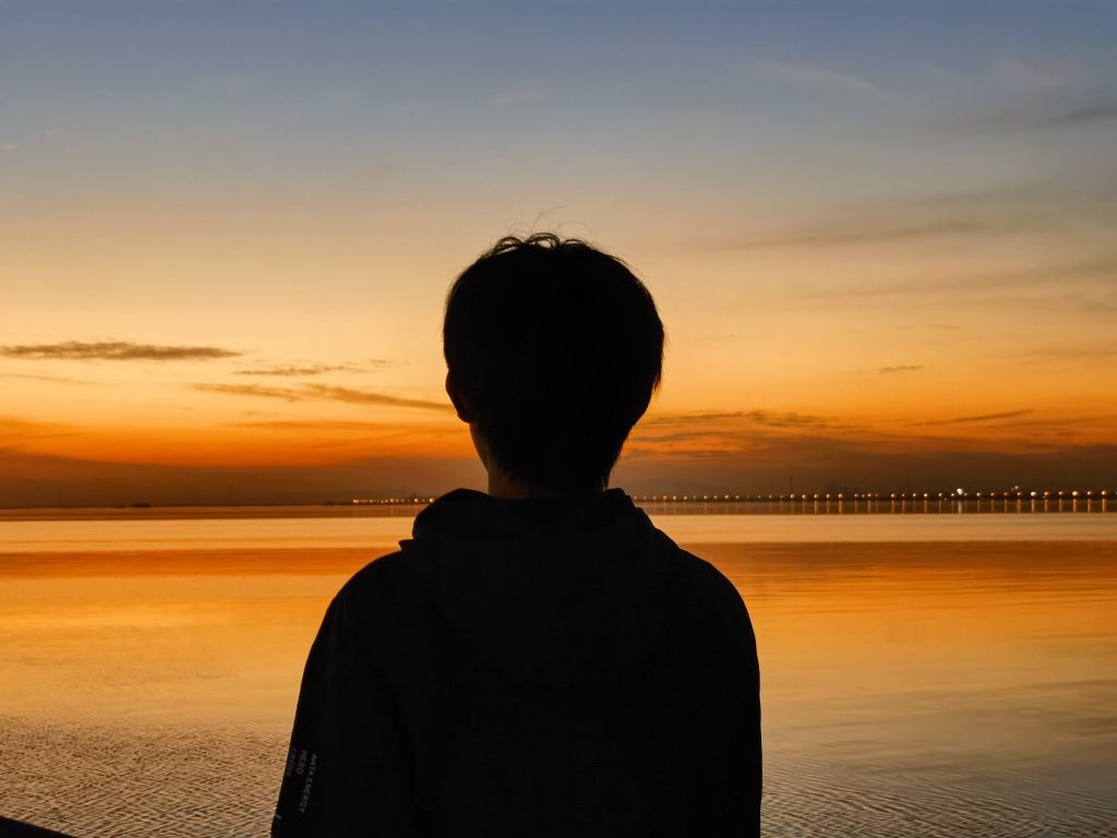 他们水鸟一样停歇在湖边的观景平台上,倚着布满蛛网的栏杆目送西方天空逐渐式微的光。一线青山将天与水从地平线处破开,如同两面镜子中间的合页。暮色从身后铺开,蚕食天边的霞光,路灯在一瞬间一盏一盏的亮起,霓虹灯在镜头里的光晕让世界变得虚浮而梦幻,纸醉金迷,如坠云端。