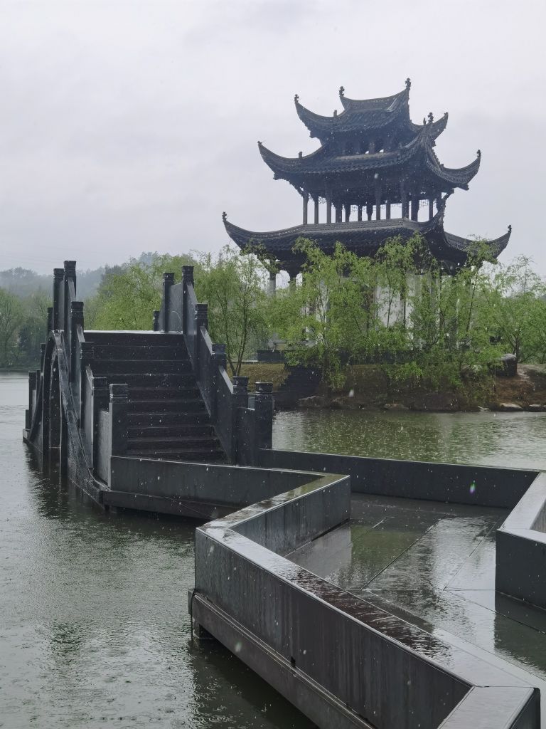 上河景区的最后一站是砚亭,砚亭位于墨湖中心,登临远眺,隐约可见远处的油菜花田。